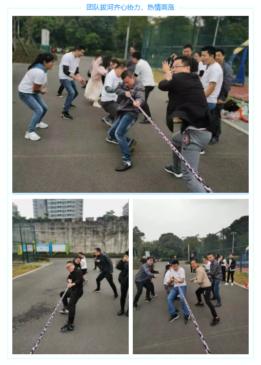 拔河比賽分成四組(銷售部、技術(shù)部各一組,生產(chǎn)部兩組),采用循環(huán)交叉比賽,勝一場記1分,按累計分?jǐn)?shù)排名,之后選出獲勝的拔河團(tuán)隊。