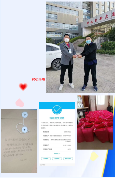 “一方有難、八方支援”,連日來,新冠肺炎疫情牽動著億萬國人的心,為全力支持新冠肺炎疫情防控工作,攜手打贏疫情防控阻擊戰(zhàn),近期,我公司為基層醫(yī)務人員送溫暖!進行愛心捐贈,捐贈款項為公司2萬,公司股東每人2千~1千不等,力量雖微薄,卻是匹夫之心!