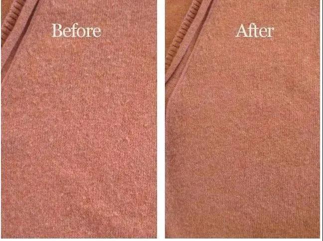 2、用除毛梳在起球的地方輕輕刮一下,超容易就清理掉小毛球啦~