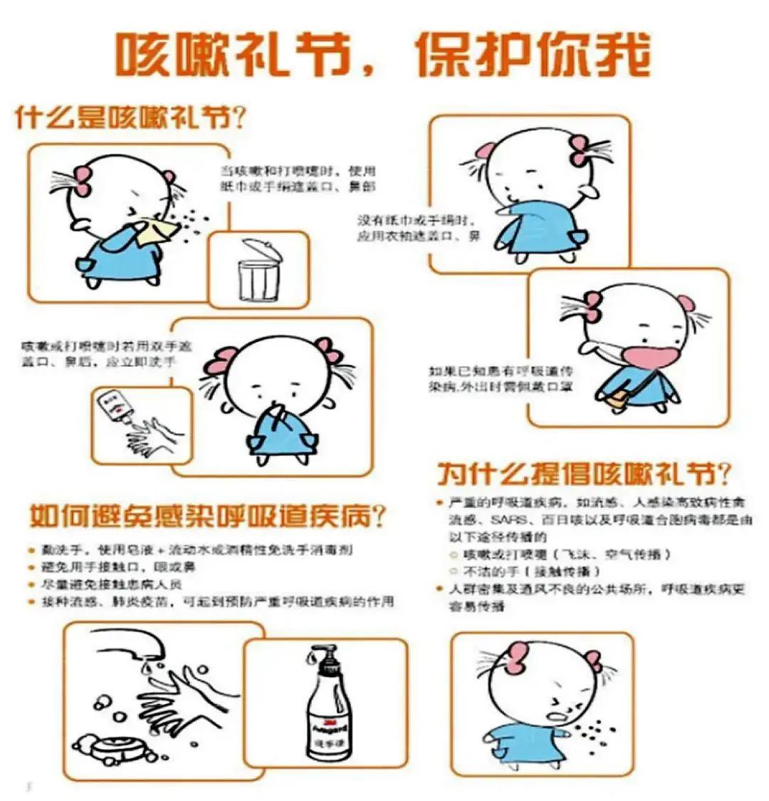 咳嗽打噴嚏時,用紙巾捂住口鼻,無紙巾時用手肘代替,注意紙巾不要亂丟。